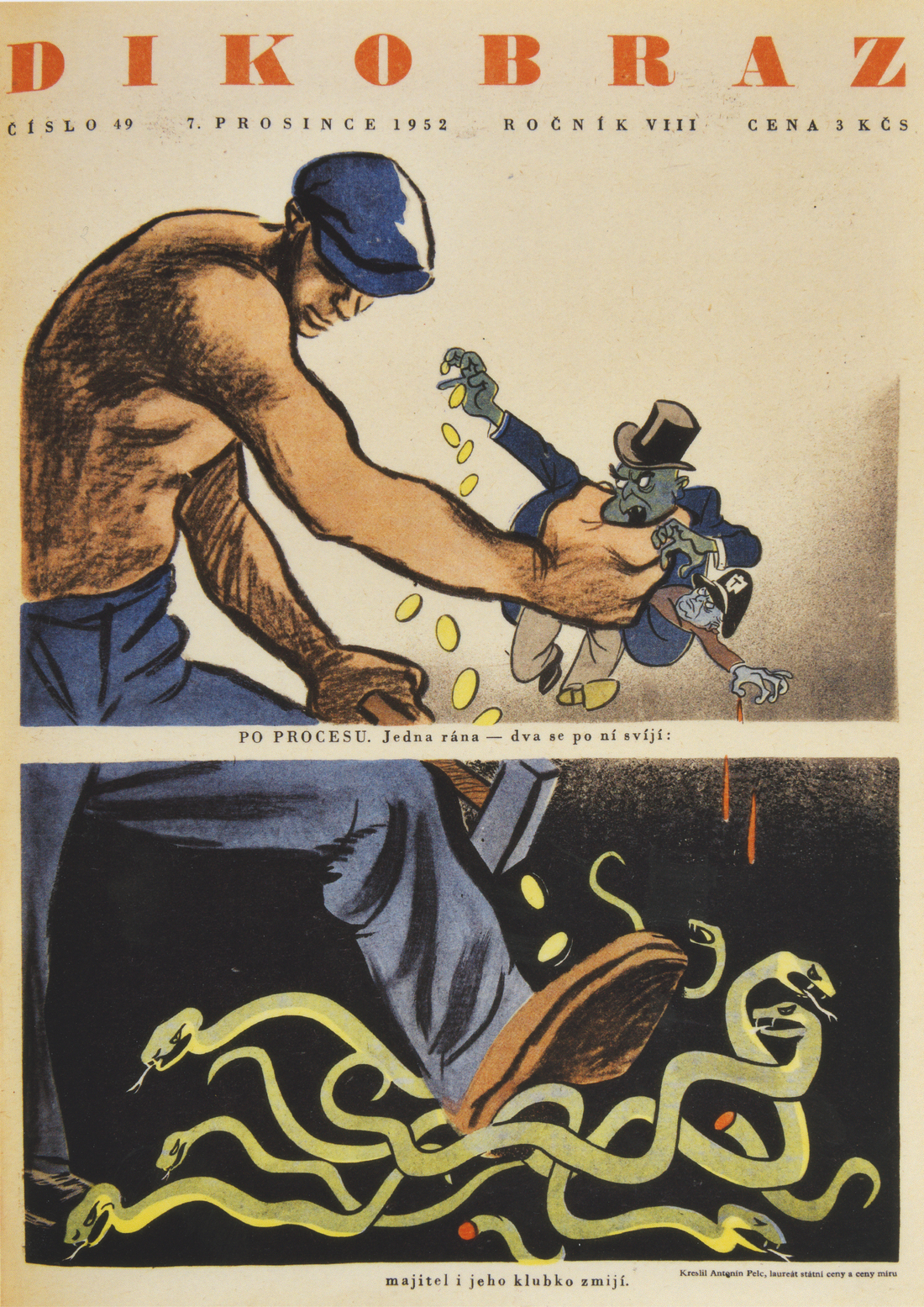 2. Poprava Rudolfa Slánského interpretovaná jako vítězství dělnické třídy nad židovským kapitalistou